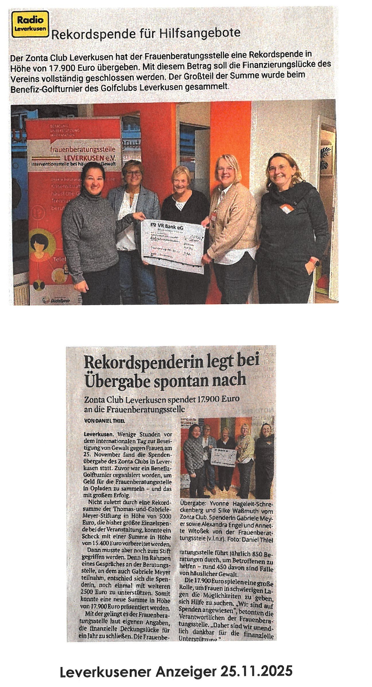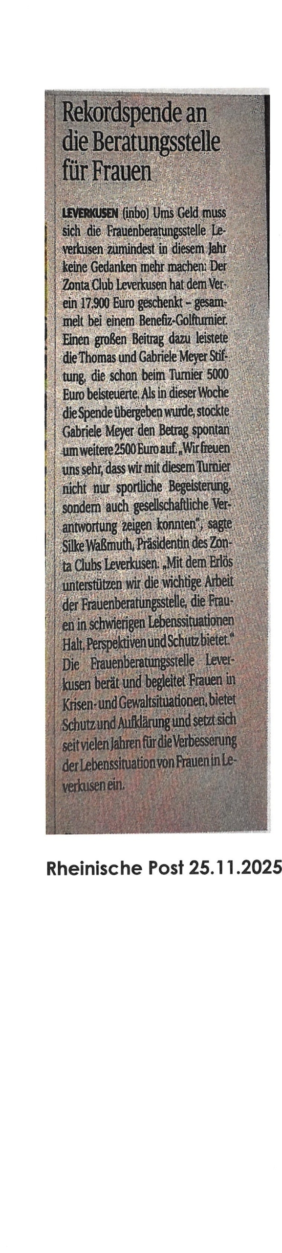 Rekordspende des Zonta Clubs Leverkusen 2025