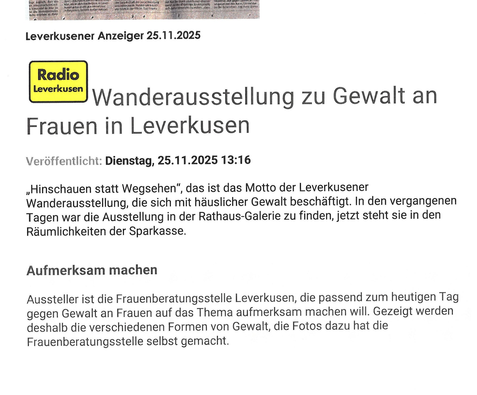 Pressespiegel der Frauenberatungsstelle Leverkusen
