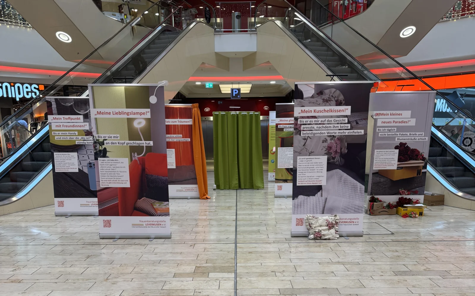 Ergänzt wird die Ausstellung durch symbolische Alltagsgegenstände, die verdeutlichen: Häusliche Gewalt kann überall stattfinden – oft mitten im scheinbar Normalen.
